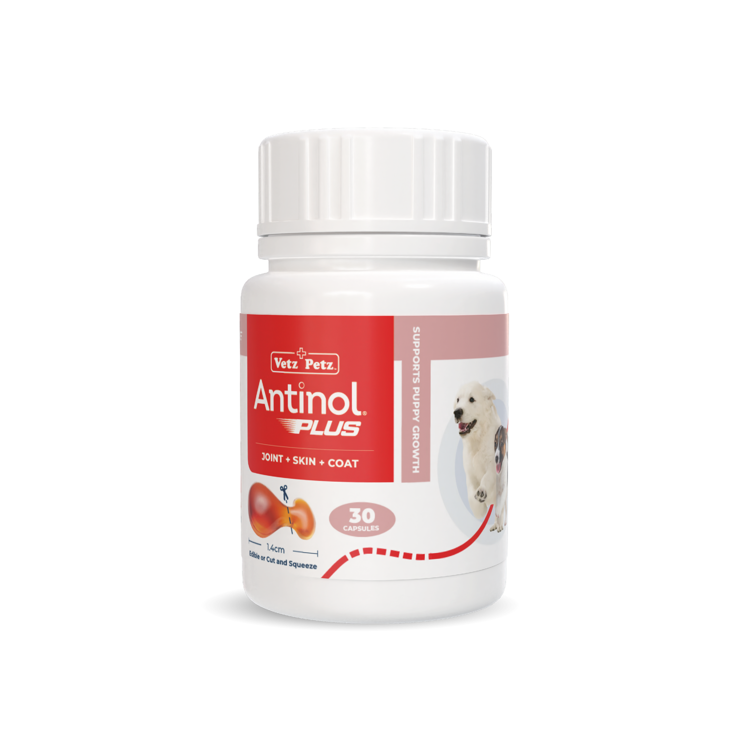 Omega 3 Fatty Acids play a vital role in your puppy's development, particularly during their early stages. Since dogs cannot produce these essential fatty acids on their own, they must be included in their diet. Marine Omega Fatty Acids, like those found in Antinol® Plus, play a role in brain development, memory, and trainability, making them essential for young, growing puppies.