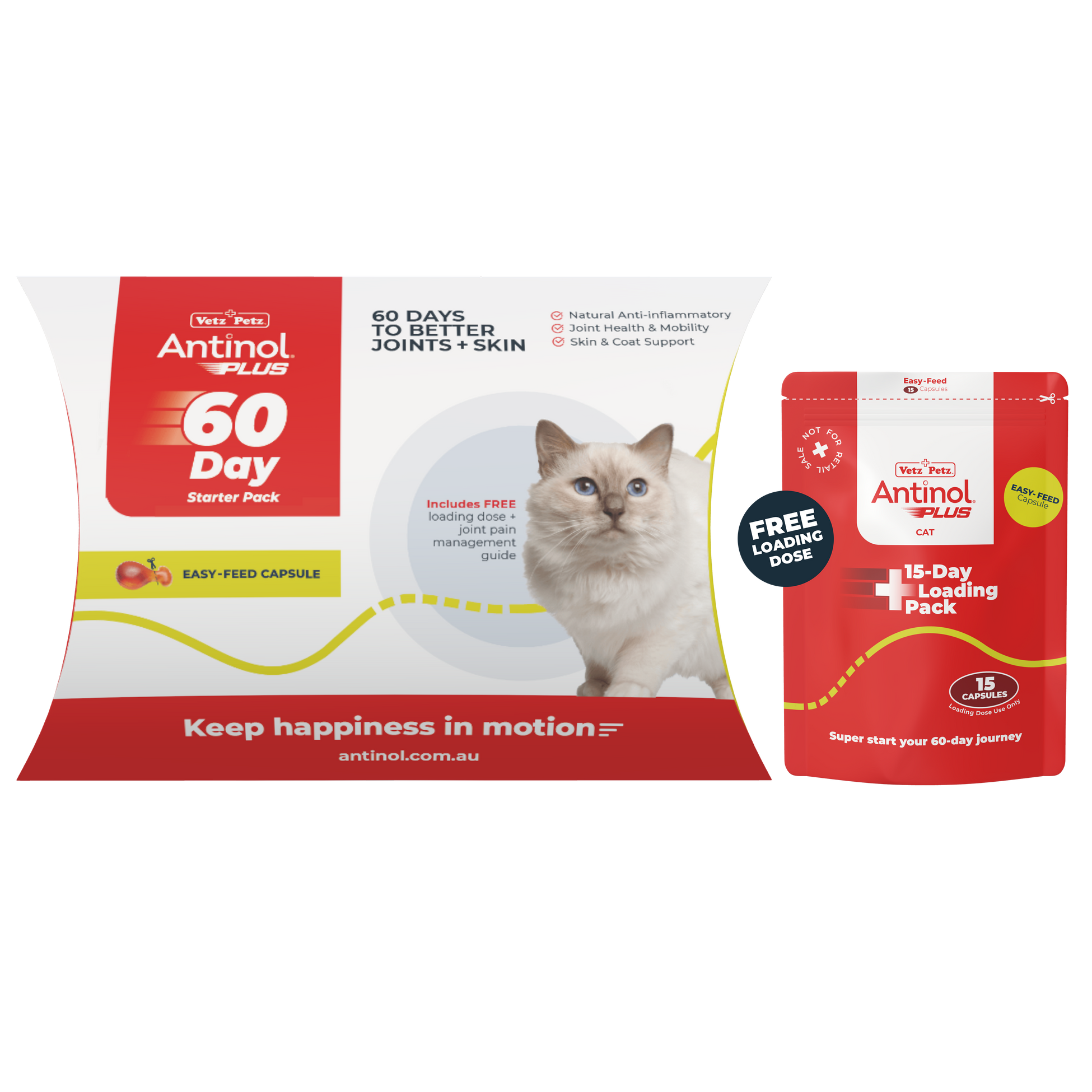 Doubling the dose of Antinol® Plus in the first 2 weeks is the most effective way to see the best results for your cat. This is why we are giving you the free loading dose pack.