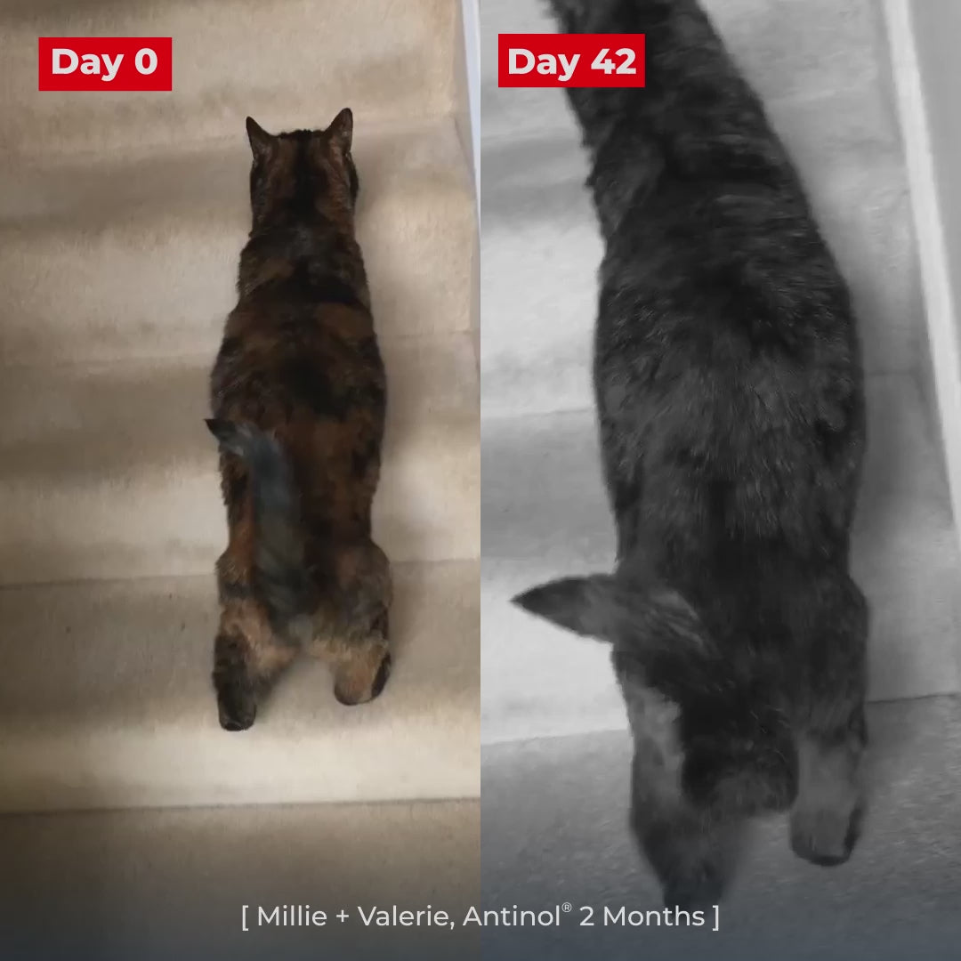 Each cat is different. Some pet parents have reported improvements in a matter of days. Others take longer. For optimal joint care for cats, use Antinol® Plus for at least three months and visit your vet for regular evaluation afterwards.