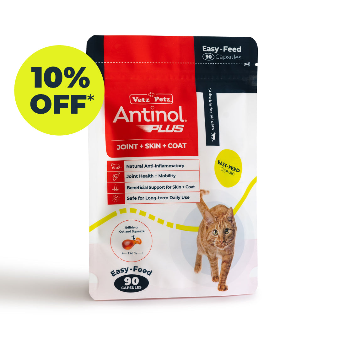 3. This offer is only applicable to new subscriptions for the 60, 90 and 180 capsule packs of Antinol® Plus and 120 Easy-Feed capsule packs of Antinol® Plus for Dogs and the 60 and 120 capsule packs of Antinol® Plus and 60 and 90 Easy-Feed capsule packs of Antinol® Plus for Cats.